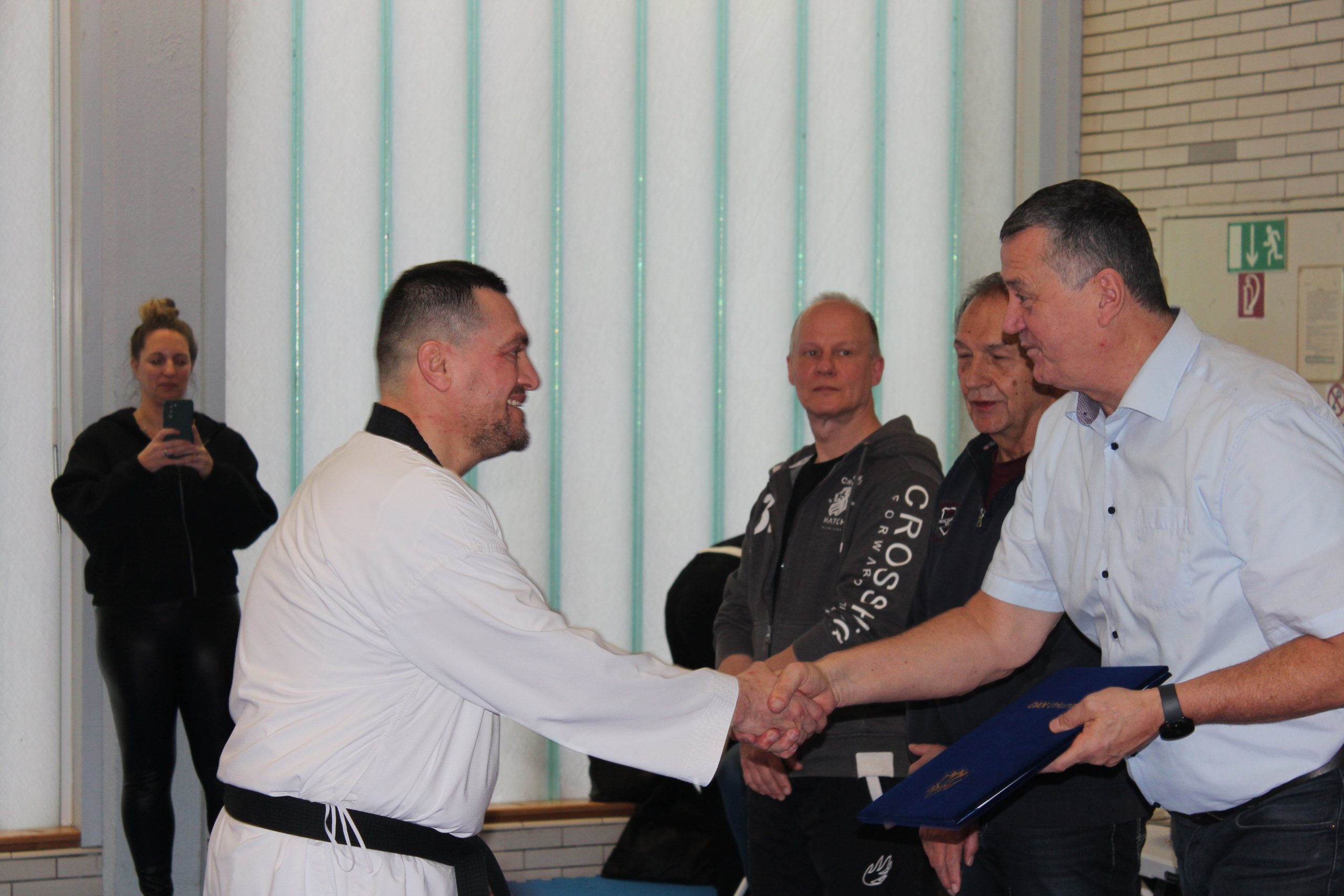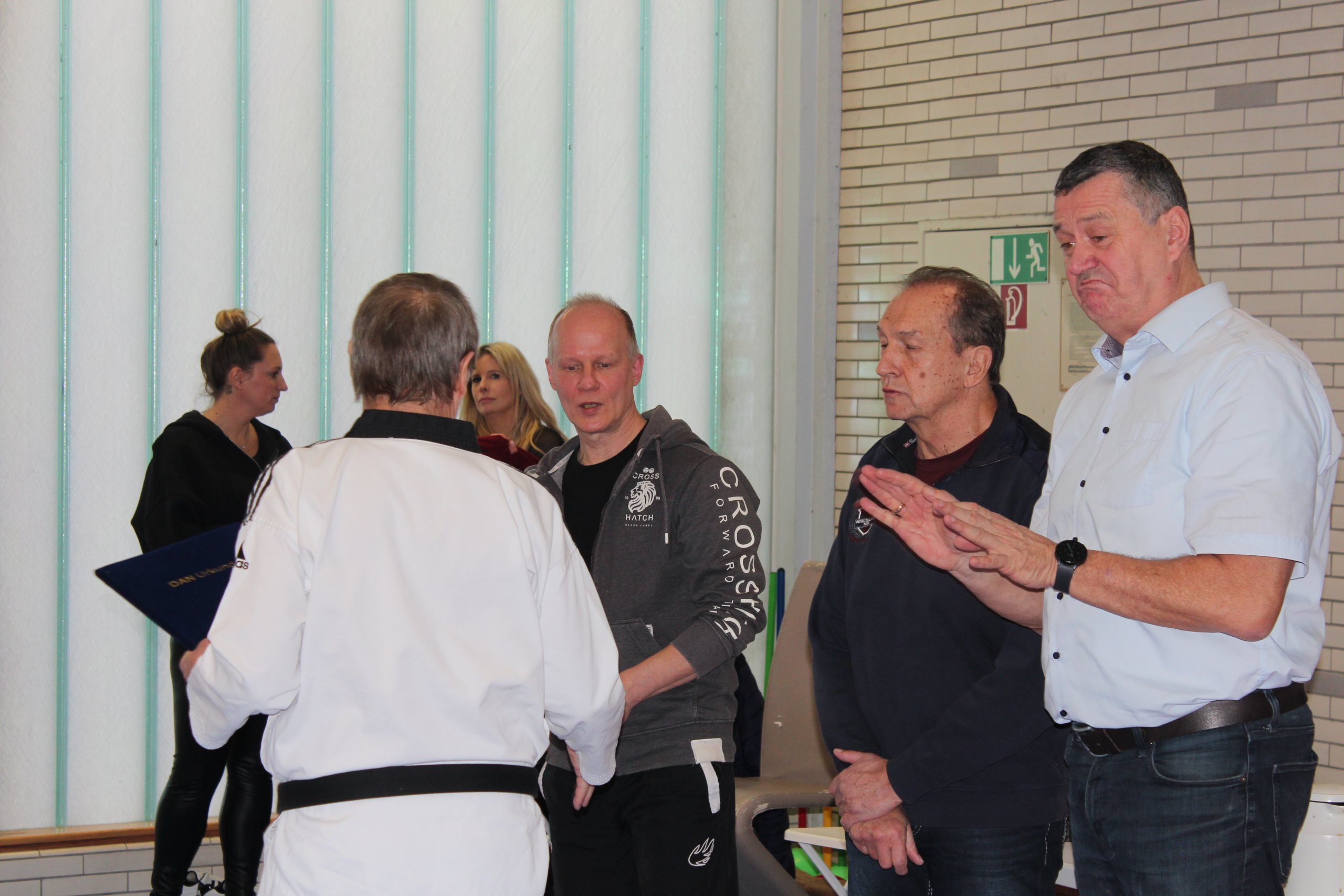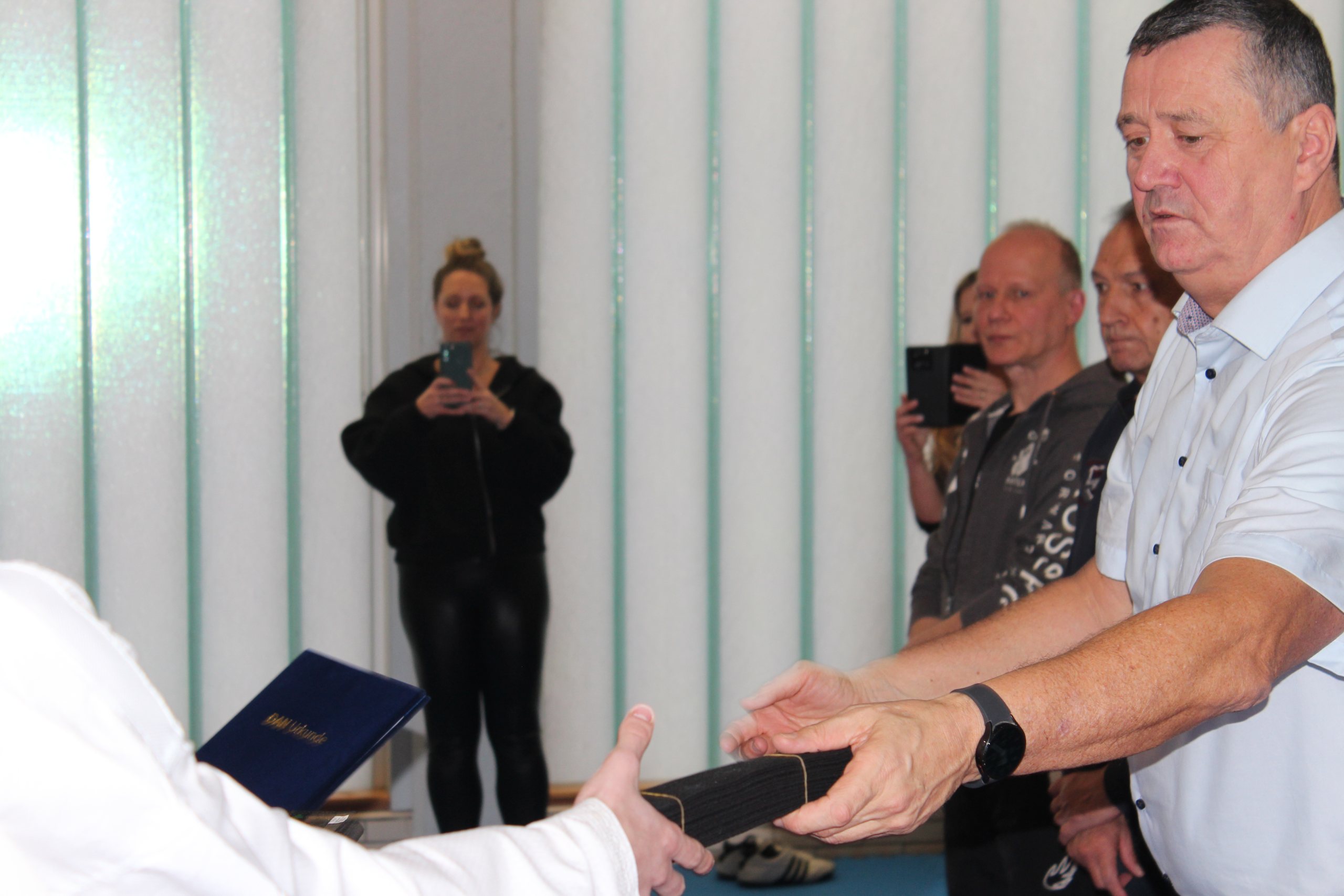 Reinhard Beermann (64 Jahre) stellte eindrucksvoll unter Beweis, dass Taekwondo keine Altersgrenzen kennt. Mit einer guten Leistung erreichte er den 3. DAN und unterstrich damit die lebenslange Leidenschaft und Hingabe für den Kampfsport.