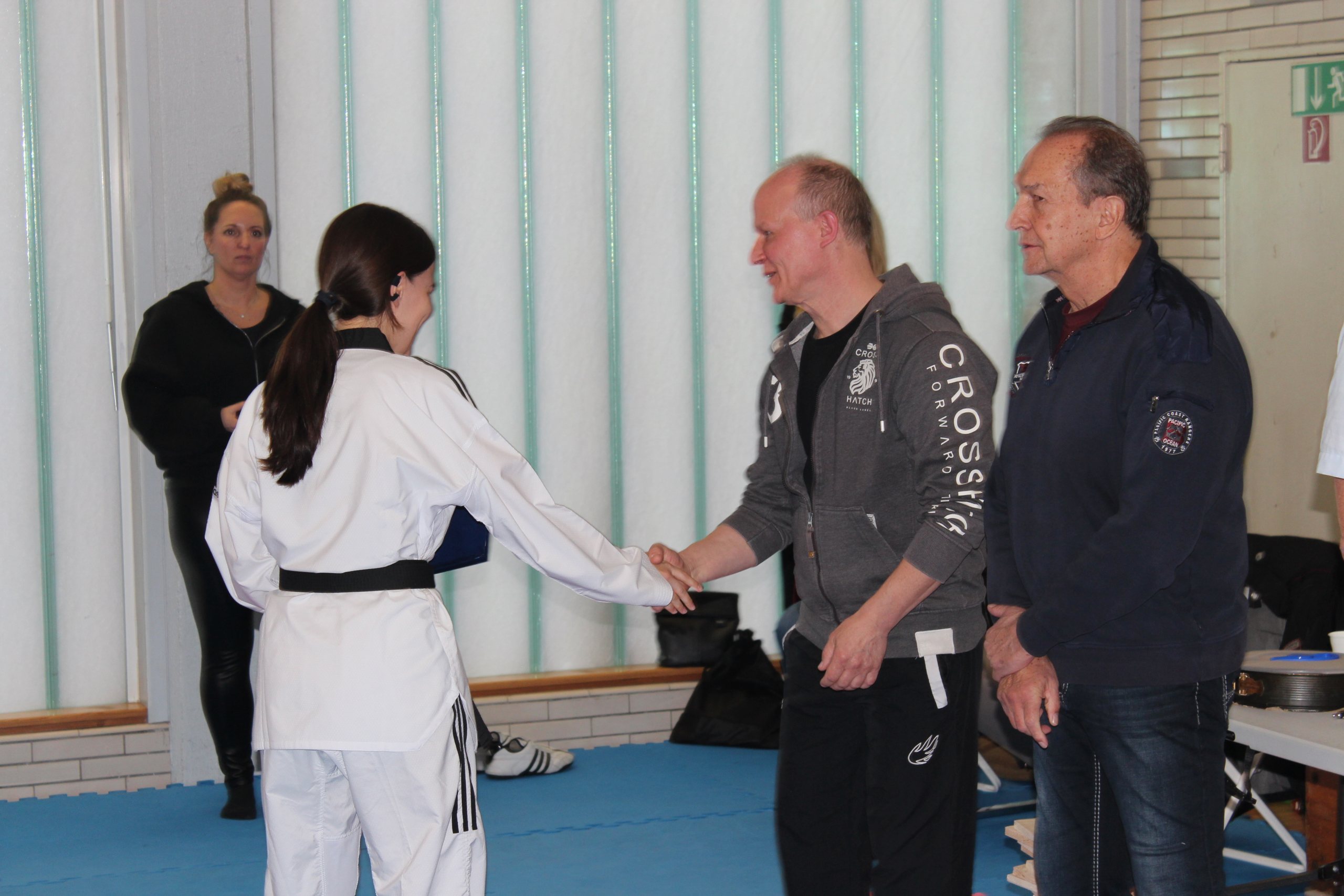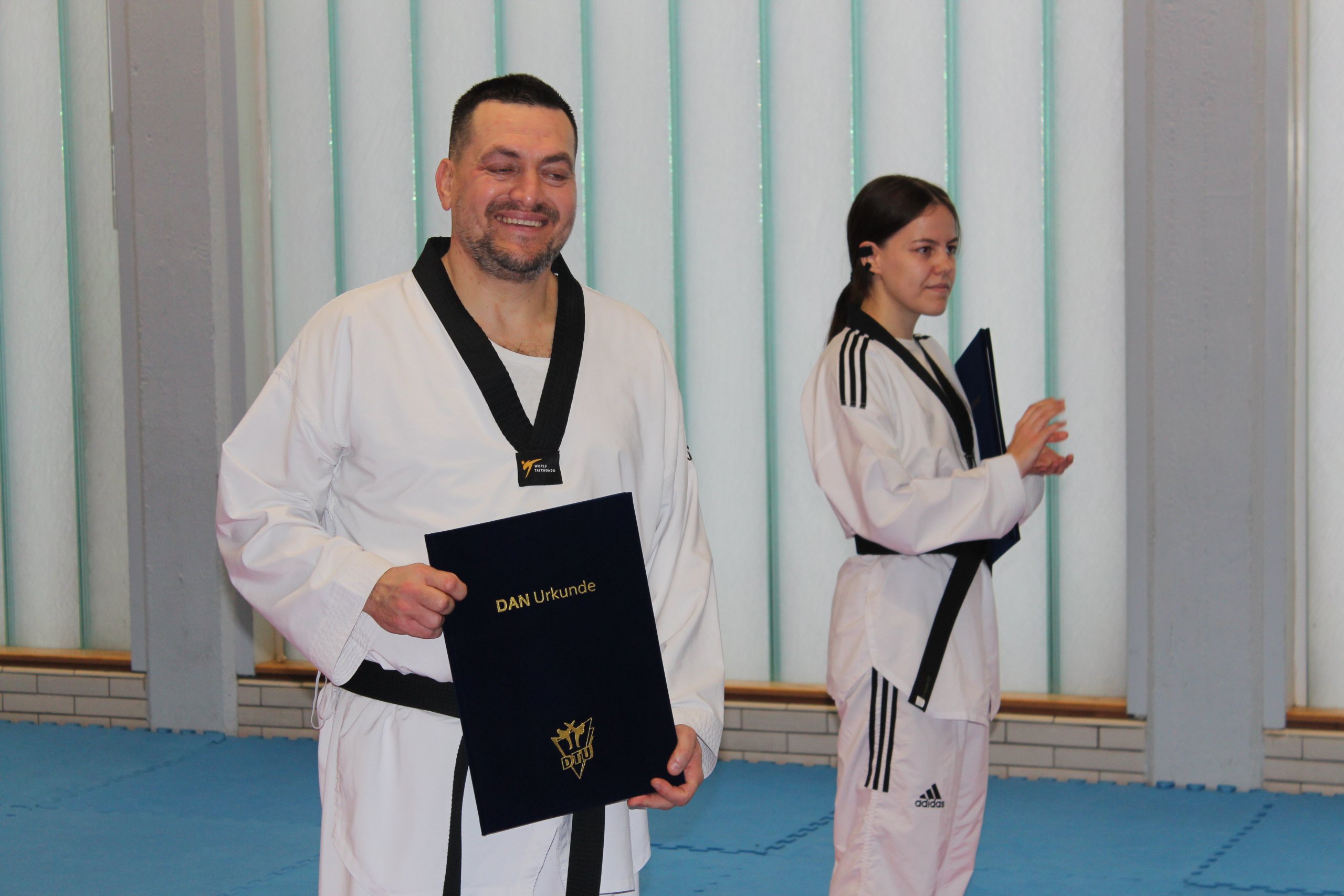 Maike Hüllmann (30 Jahre) und Aytac Pekmez (46 Jahre) haben mit viel Hingabe und Können den Schritt zum 2. DAN gemeistert. Sie zeigten nicht nur Präzision, sondern auch eine tiefere Reife im Taekwondo.