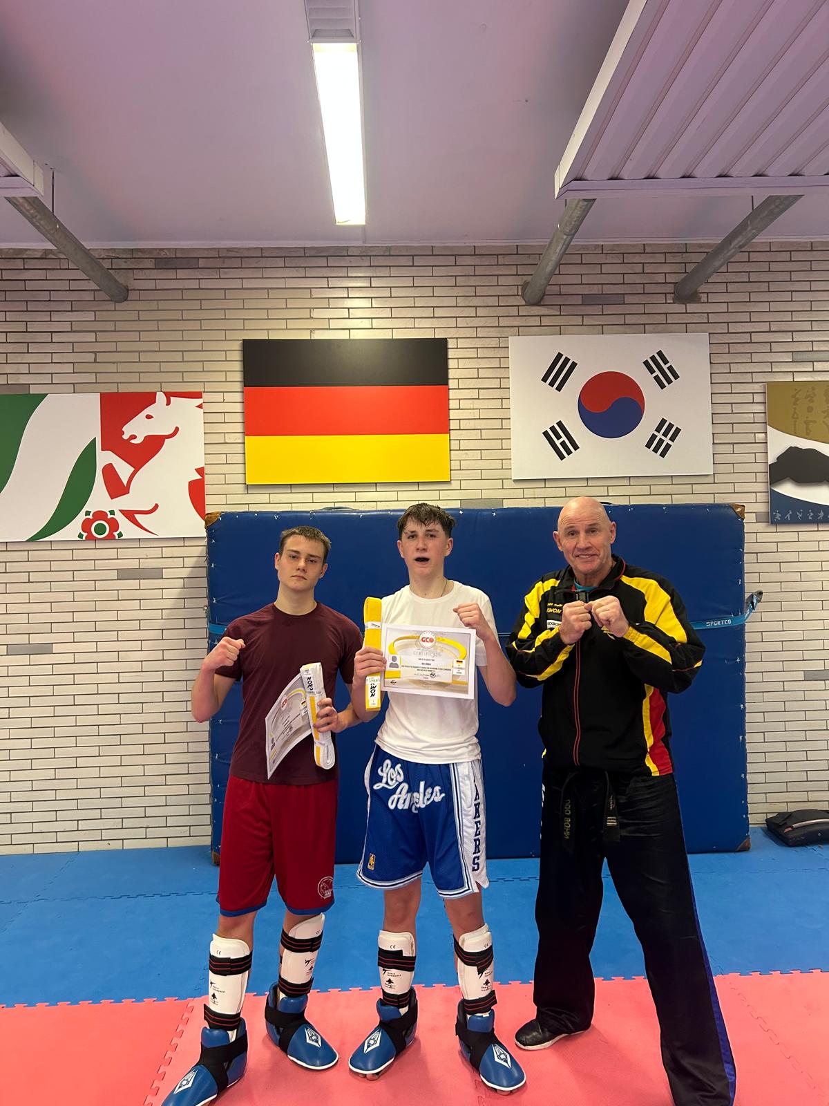 Im Anschluss folgte der Kampfteil (Sparring), unterteilt in die Kategorien Semikontakt, Leichtkontakt und Kick Light (Vorstufe von K1). Hier mussten die Prüflinge in mehreren Runden ihr technisches Können und taktisches Verständnis unter Beweis stellen. WKU-Prüfer Udo Sohn legte großen Wert auf saubere Techniken und taktisches Kämpfen – eine wilde Prügelei war nicht erlaubt. Alle Prüflinge meisterten diesen Teil erfolgreich.