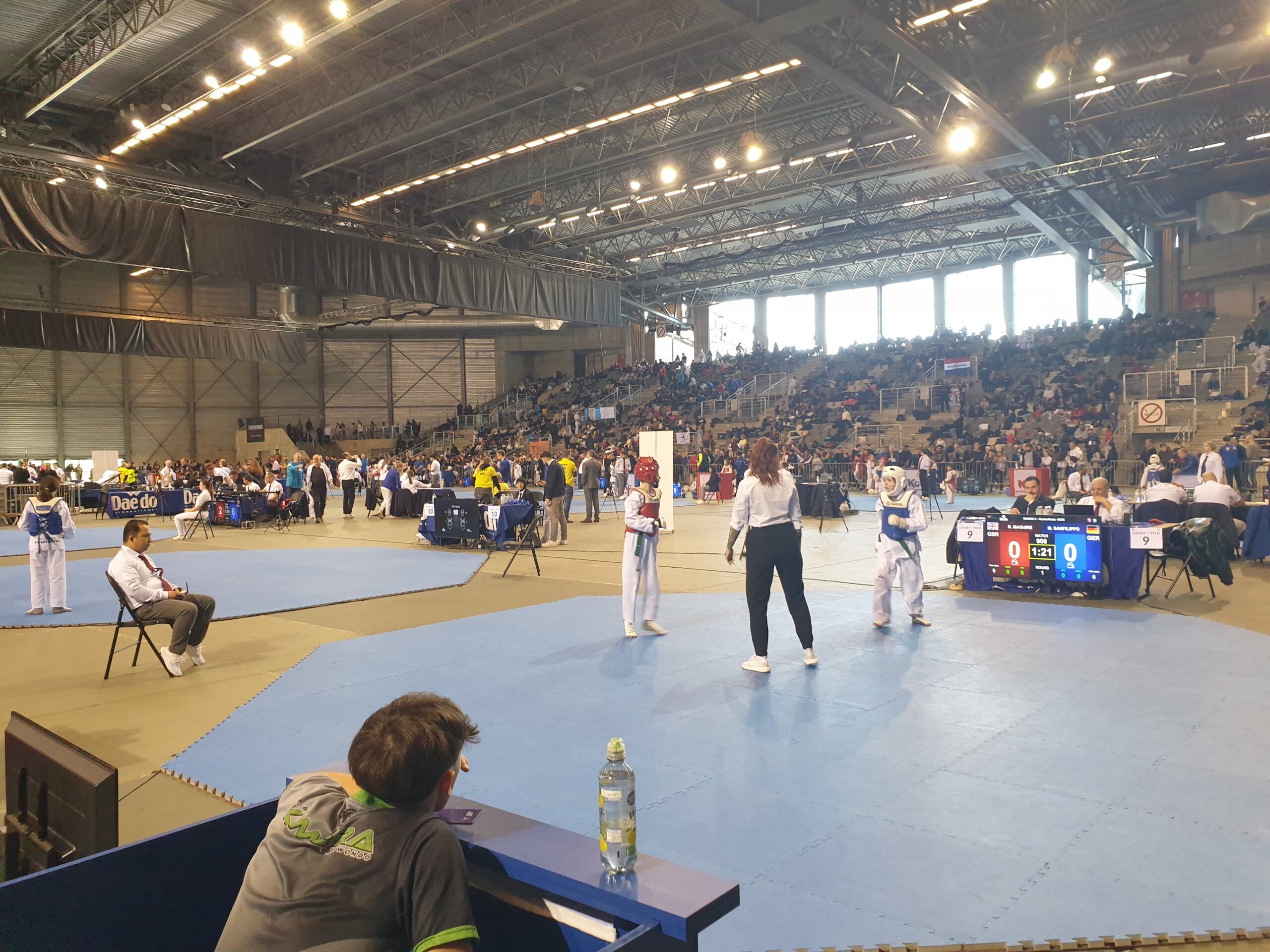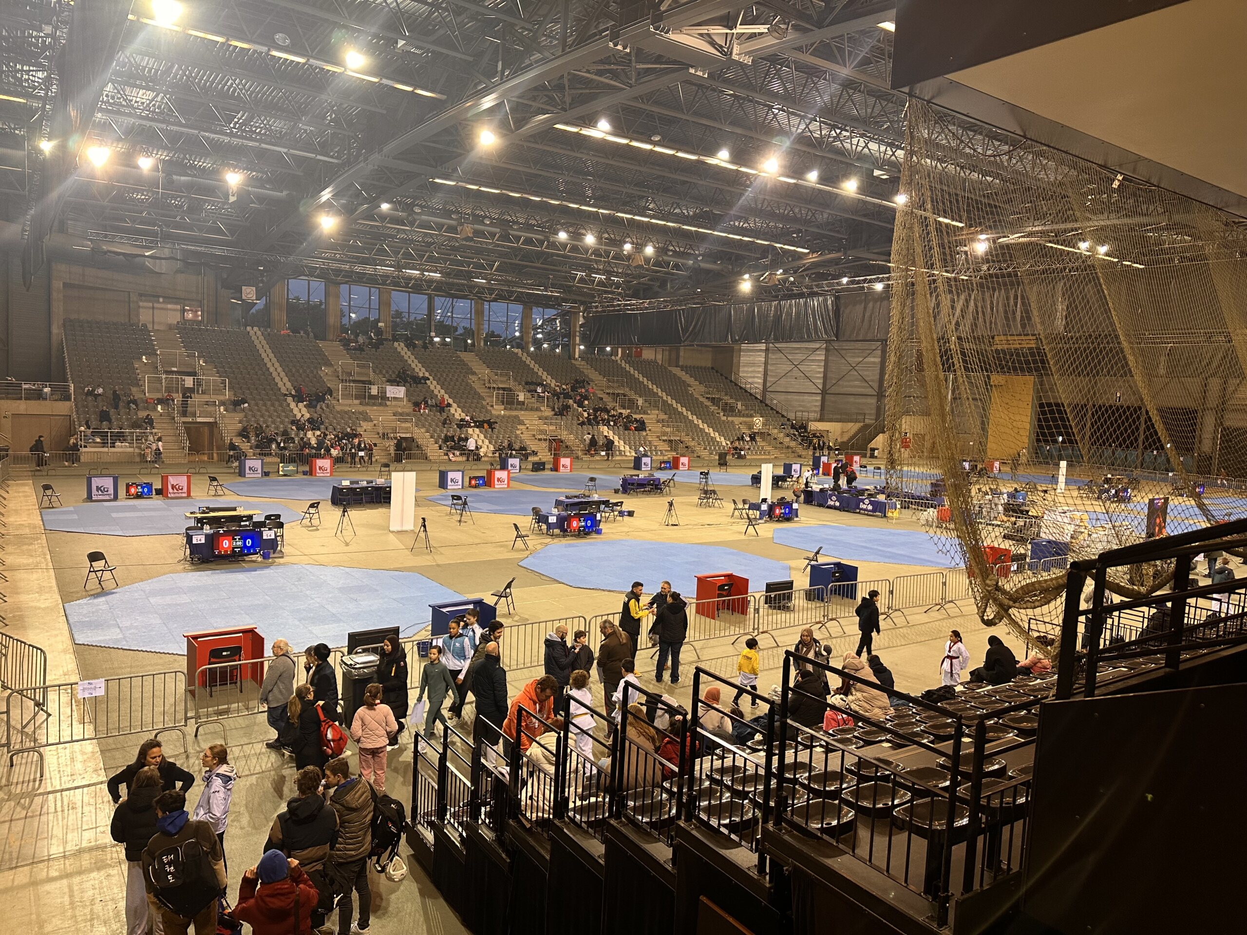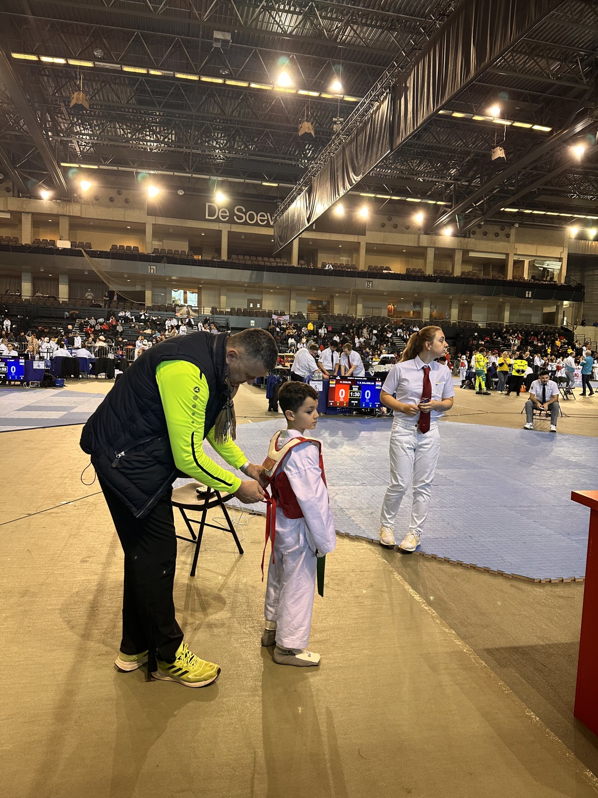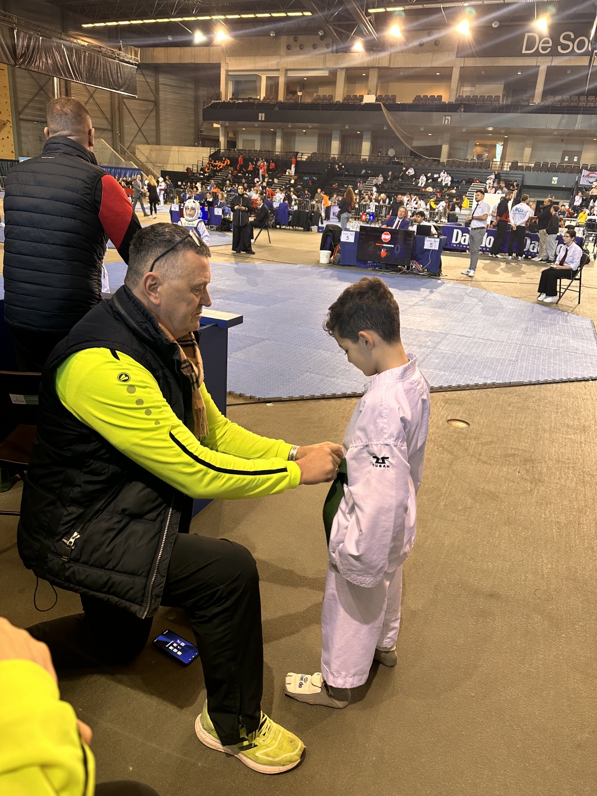 Und das Jahr geht wieder los und wir sind im Kampfmodus. Am 17.01. reisten wir am frühen Morgen mit den Coaches Melek,Michael und Mario und Samira von Lüdenscheid nach Lommel (Belgien), um an den Internationalen Keumgang Open teilzunehmen. Bei diesem hochkarätigen Turnier waren über 950 Starter aus allen Ländern gemeldet. Nach der 2 stündigen Fahrt sind wir rechtzeitig zur Waage angekommen. Die Halle war wie immer das Highlight mit 14 Kampfflächen. Für Esma, Ceyda, Safaa, Sanna, Noah, Leonie und Hamudi war es der erste Auslandseinsatz.